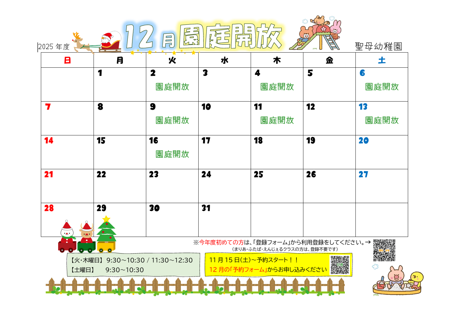 12月の開放日(PDFはこちら)(12月の園庭開放を申し込む)