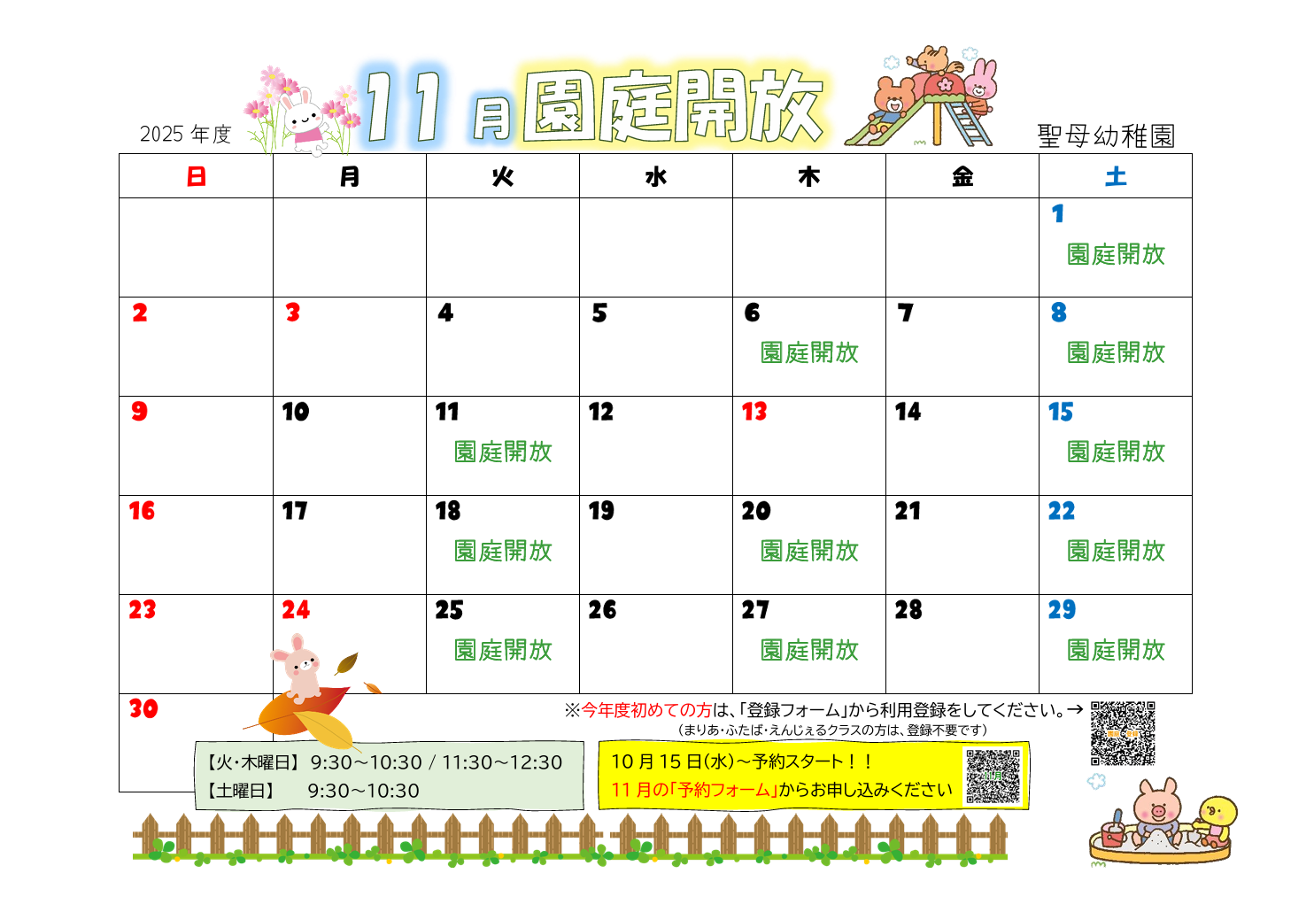 11月の開放日(PDFはこちら)(11月の園庭開放を申し込む)