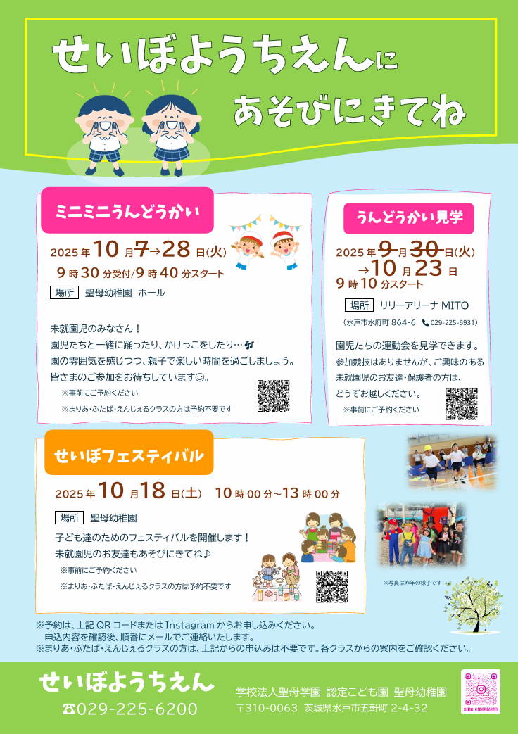 ※ ミニミニうんどうかいの日程が変更となりました。ご確認ください。