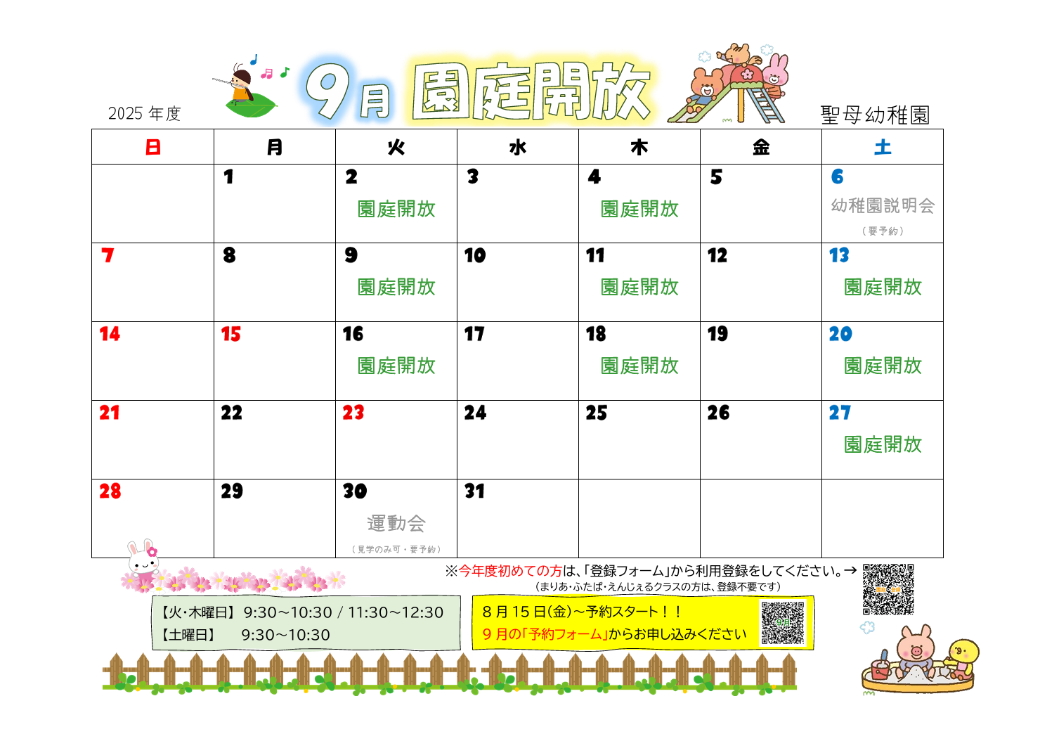 9月の開放日(PDFはこちら)(9月の園庭開放を申し込む)